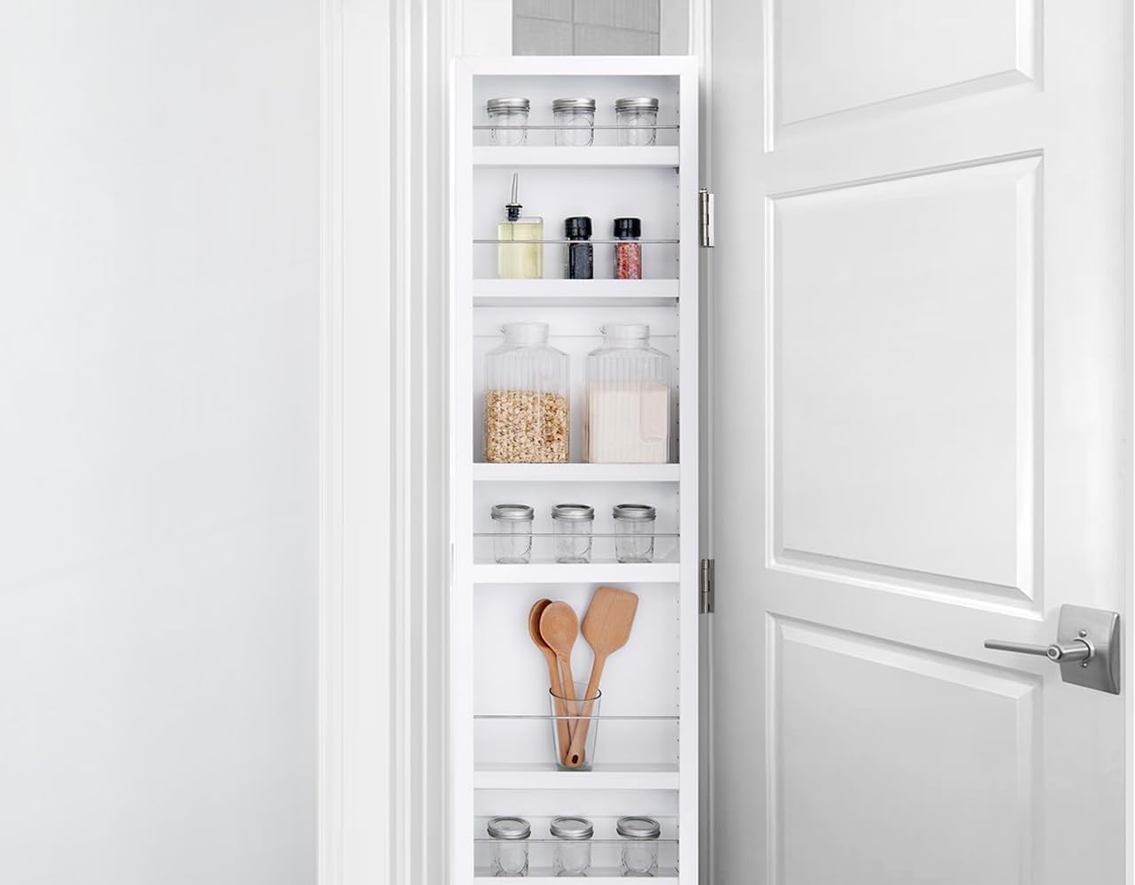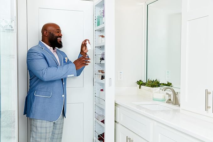 Biedt net zoveel ruimte als vijf gewone medicijnkastjes. Ideaal voor het opbergen van kleine items zoals toiletartikelen, make-up, kruiden of knutselmateriaal – zonder je planken te overladen.